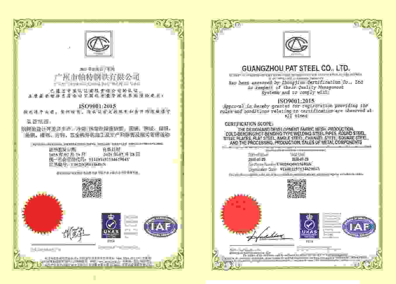 广州市帕特钢铁有限公司经营范围:生产、加工、铜、铝、钢铁型材和各类构件等五金制品,销售本企业产品。